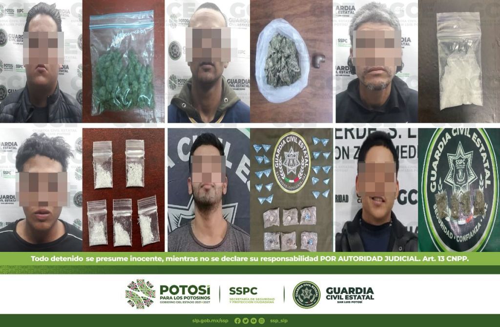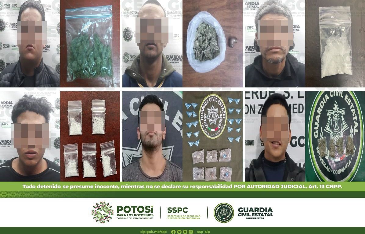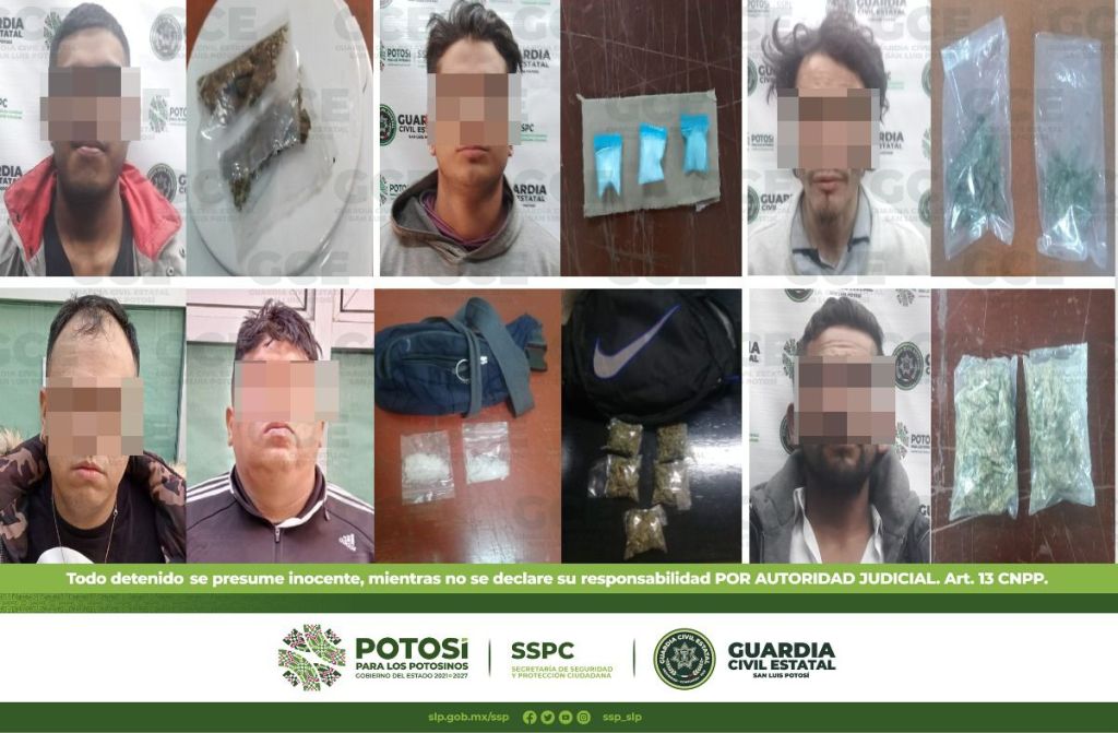 A su vez, en el municipio de Soledad de Graciano Sánchez, elementos de la GCE detuvieron a tres masculinos; uno de ellos sobre calle Corregidora en la colonia Expropiación Petrolera, a Rafael de 25 años de edad se le aseguraron tres dosis de “cristal”. En Lagos de Moreno en la colonia Villas de Foresta, fue detenido Alexis de 22 años luego de que se le aseguró una bolsita con una hierba verde y seca con las propiedades físicas de la marihuana.