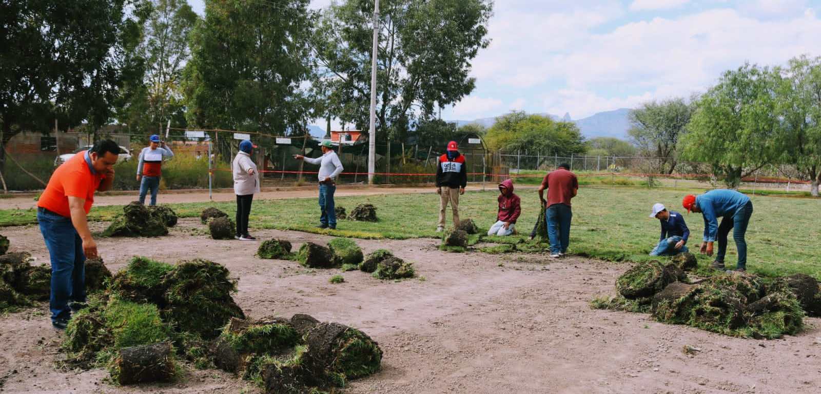 En el recorrido que realizó a las instalaciones de la Unidad, constató la colocación de pasto en la cancha de fútbol, ya que serán 9 mil metros lineales.