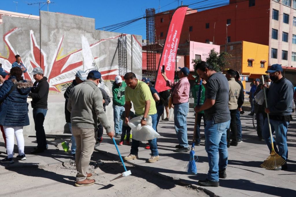 En su 55ª jornada, el programa “Domingo de Pilas” llegó a la Plaza del Mariachi, donde funcionarios, directores y trabajadores municipales realizaron trabajos de limpieza, alumbrado, pintura y arreglo de áreas verdes, entre otros, en esta ocasión con el apoyo de músicos, comerciantes de la zona y de diversas organizaciones civiles, así como de personas que habían sido detenidas por faltas menores y permutaron su arresto de 24 horas por trabajo comunitario.
