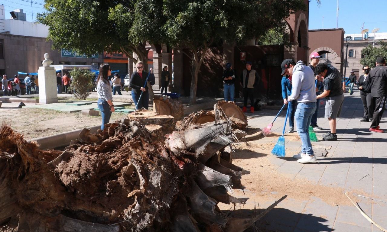 Funcionarios, directores y trabajadores municipales, con el apoyo de músicos, comerciantes y organizaciones civiles, realizaron labores de limpieza, alumbrado, pintura y arreglo de áreas verdes en la Plaza del Mariachi, en el Centro Histórico.