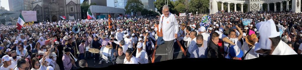 Hoy cientos de maestras, maestros, personal de apoyo y asistencia a la educación encabezados por el Prof. Juan Carlos Bárcenas Ramírez secretario general de la Sección 26, acudieron a la Ciudad de México para acompañar al Prof. Alfonso Cepeda Salas líder nacional del SNTE a la #MarchaDelPueblo para celebrar los 4 años de Gobierno y para decirle al presidente de la República Lic. Andrés Manuel López Obrador, que están con él en la búsqueda de la cuarta transformación, ya que el SNTE también quiere un país con equidad, sin corrupción, con mejores niveles de bienestar y desarrollo.