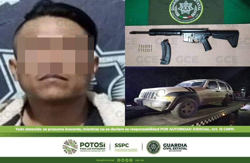 Los hechos se suscitaron en los dispositivos de seguridad en el tramo estatal Tanquián-San Vicente en el Ejido La Sagrada Familia, lugar en donde tuvieron contacto visual con el conductor de una camioneta marca Jeep, color blanco, sin placas, por ello le marcaron el alto para una inspección de rutina.