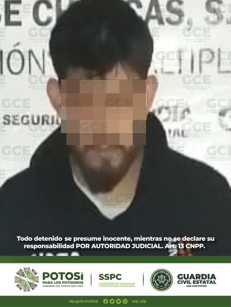A su vez, en el municipio de Charcas, sobre la calle de Vicente Guerrero en la zona centro, los oficiales de la GCE detuvieron a Joshua de 23 años de edad quien fue señalado por su pareja como el supuesto responsable de violentarla física y psicológicamente.