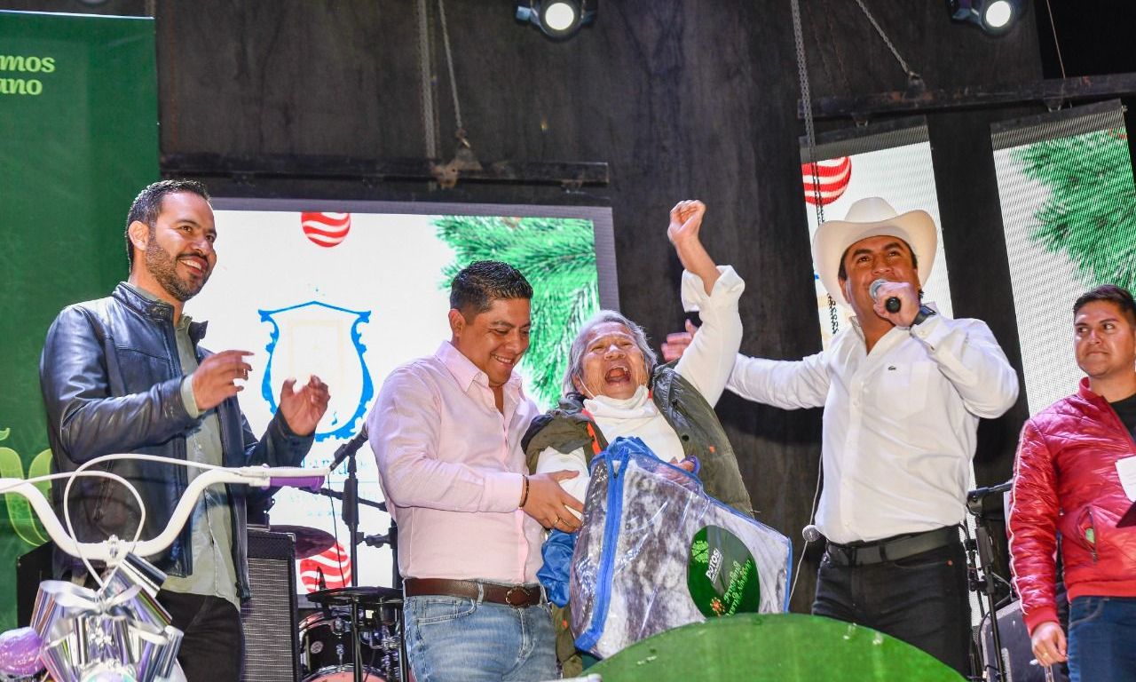 La alegría y el ambiente familiar de la temporada decembrina, inundó la plaza principal ante cientos de personas que además recibieron cobertores y juguetes