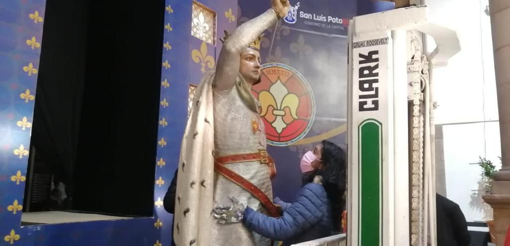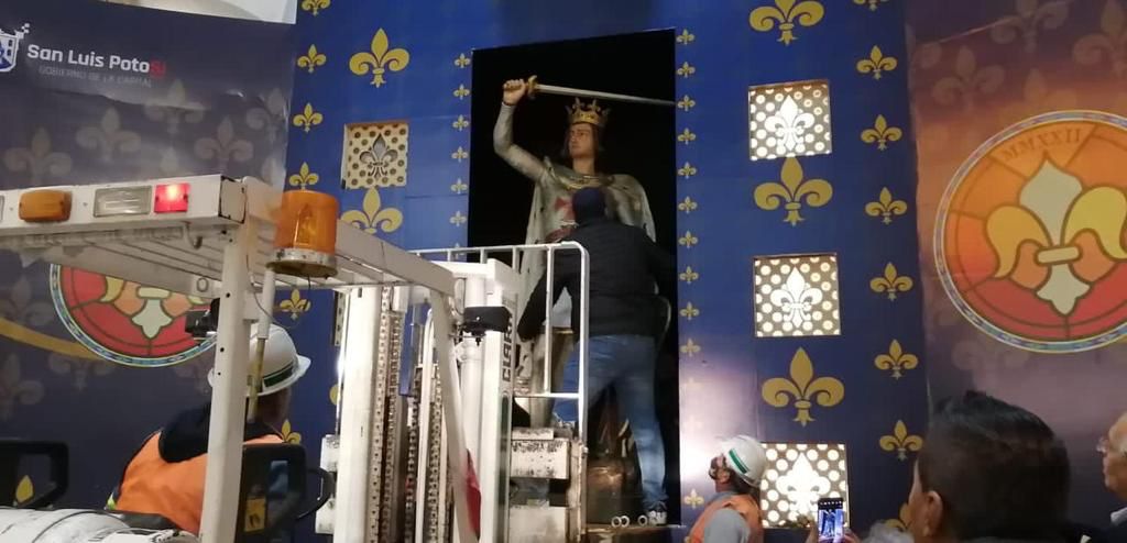 Luego de concluidos los festejos del 430 Aniversario de la Fundación de la ciudad de San Luis Potosí, personal especializado de Patrimonio Cultural, Conservación y Proyectos de la Unidad de Gestión del Centro Histórico del Ayuntamiento, realizó una limpieza a la escultura de San Luis Rey de Francia, previo a su traslado de regreso a la Catedral Metropolitana, lugar original de su ubicación.