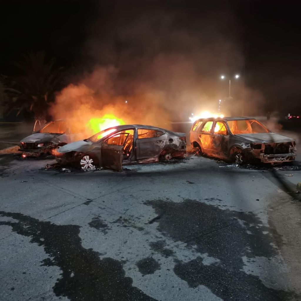 En tanto, la Guardia Nacional informó de sujetos armados cometiendo quema, despojo y ponchallantas para vehículos de carga, sobre la Carretera Fresnillo – Zacatecas, a la altura del Puente del Jorobado; además de vehículos siniestrados sobre la carretera Zacatecas – Durango (Ruta 45 Fresnillo km 48), además del cierre de la Caseta Calera-Zacatecas.