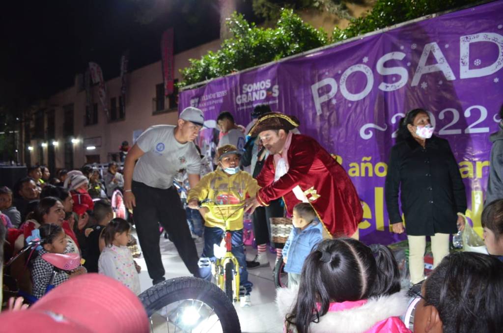 Y finalmente con el ambiente del payaso Tripín se hizo entrega de juguetes y rifa de bicicletas a las niñas y los niños, además de los cobertores a las familias del municipio, ya que es la octava edición de este evento decembrino que se le da continuidad y que inició la ex alcaldesa, Érika Briones Pérez.