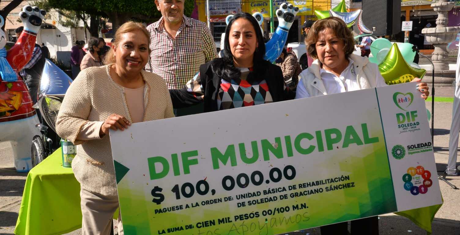 En el evento se hizo la entrega de sillas de ruedas a personas que requieren de este apoyo técnico para facilitar su movilidad, también se recibió el donativo de cien mil pesos, por parte de las mujeres emprendedoras que participaron en dos de las ediciones del Mercadito Yo Consumo Local, lo cual permitirá la adquisición de equipo y ampliar el número de terapias que se ofrecen en las UBR`s.