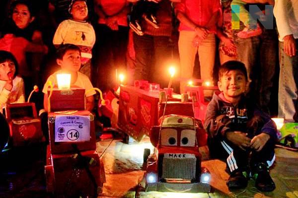 Un signo muy característico de esta tradición que se celebra de manera especial en la localidad de Tuxpan, es que los niños caminan junto con sus padres jalando carros de cartón que portan velas encendidas.