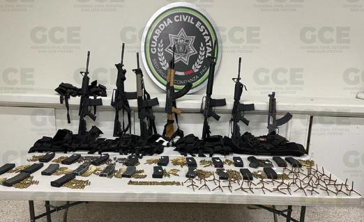 Como parte del Plan Integral de Seguridad que se despliega en las cuatro zonas del territorio potosino y luego del reforzamiento de la vigilancia estratégica en diversos puntos de la ciudad y su zona metropolitana, ante los acontecimientos de inseguridad registrados en aquella Entidad vecina, se confirma el arresto de 7 masculinos, quienes fueron sorprendidos portando armas de grueso calibre, chalecos balísticos, cargadores y cartuchos útiles y artefactos conocidos como “poncha llantas”.