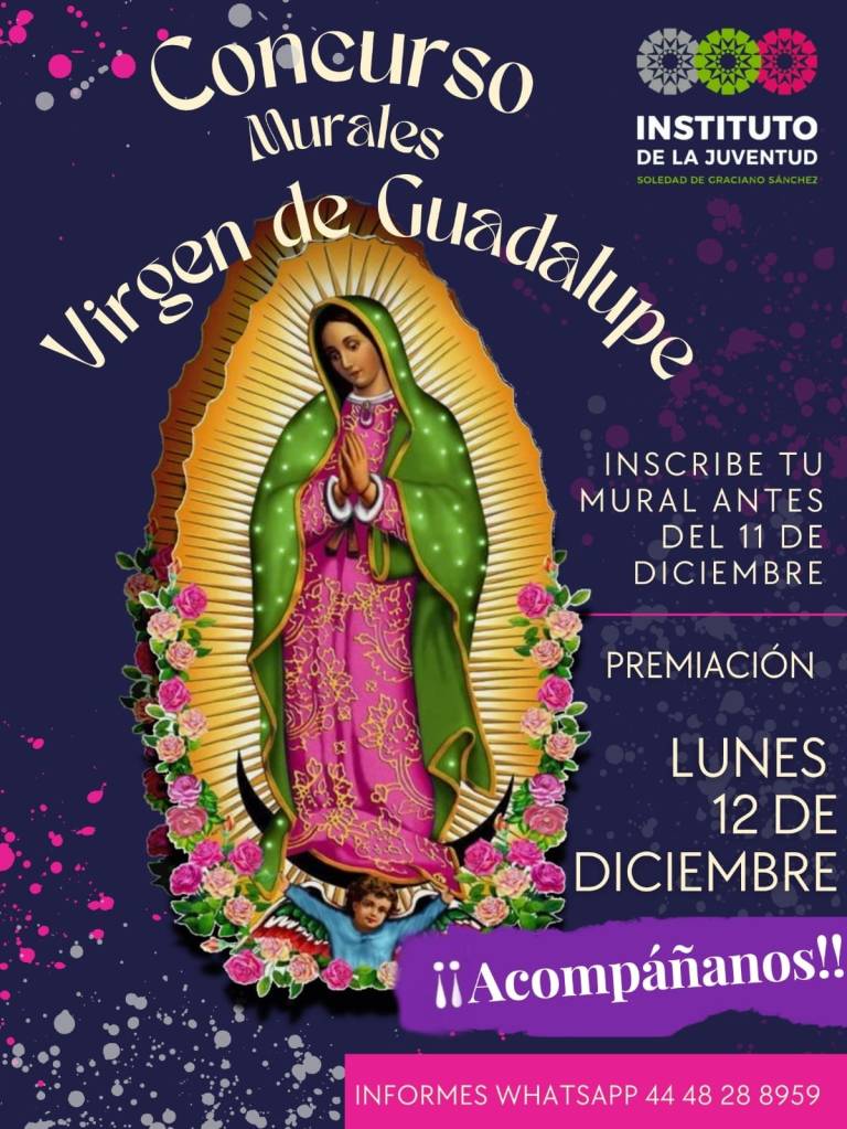 Con el objetivo de impulsar las tradiciones mexicanas, el Instituto Municipal de la Juventud a cargo de Gerardo Sosa de Torres invita a los jóvenes soledenses a participar en el concurso de murales de la Virgen de Guadalupe el cual se realizará el próximo lunes 12 de diciembre.