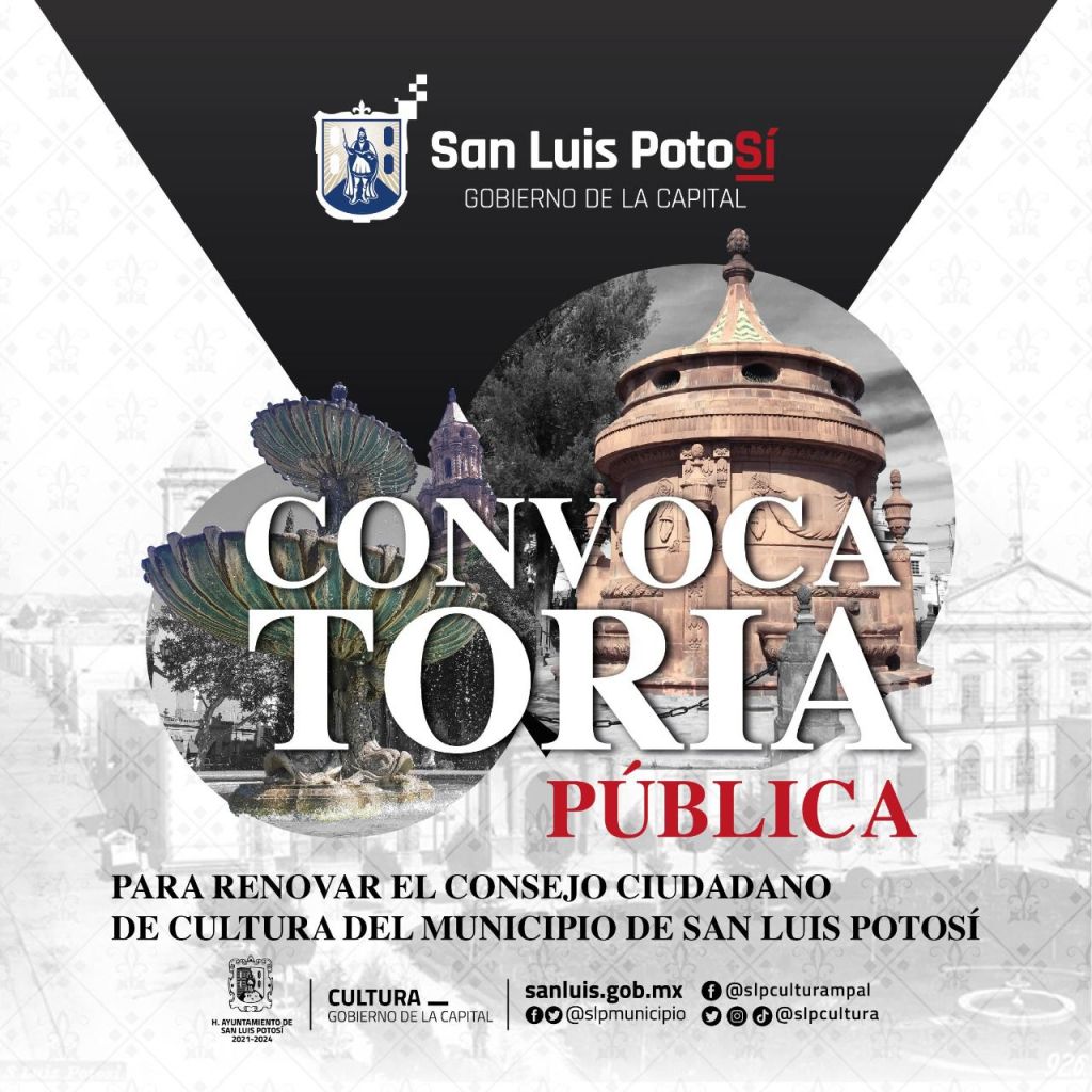 El H. Ayuntamiento de San Luis Potosí, a través de la Comisión de Cultura, Recreación, Deporte y Juventud del Cabildo, y la Dirección de Cultura Municipal, han emitido las bases de la Convocatoria para Renovación del Consejo Ciudadano de Cultura, mismo que una vez seleccionado, tendrá una vigencia a octubre del 2025.