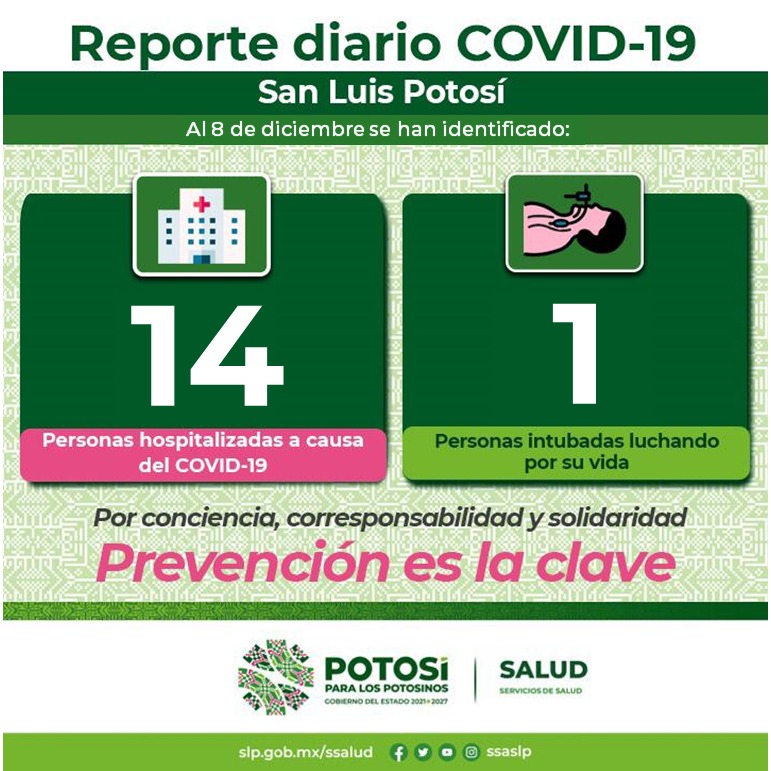 Para este día la ocupación hospitalaria en el Estado por Covid-19 se encuentra en un tres por ciento al haber catorce personas hospitalizadas; para prevenir contagiarse del virus se requiere seguir aplicando las medidas sanitarias de prevención y si presenta síntomas de enfermedad respiratoria use cubrebocas y acuda a su médico.