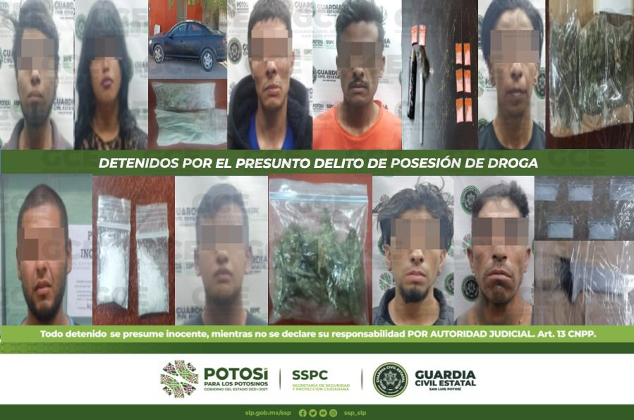 Derivado de las estrategias de seguridad y protección ciudadana trazadas por este Gobierno del Cambio, en distintas acciones, policías de la Guardia Civil Estatal (GCE) detuvieron a 14 personas por presunta posesión de estupefacientes.
