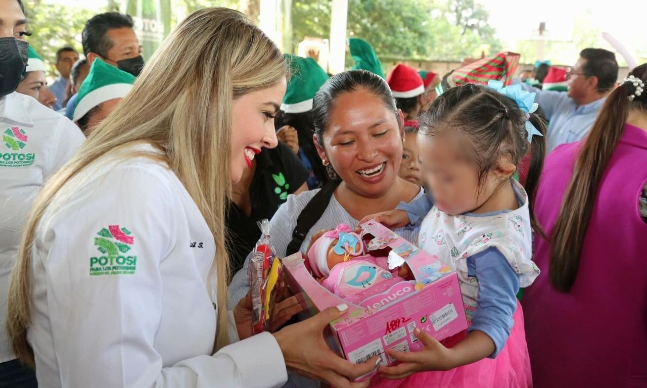 Al respecto, Ruth González Silva, presidenta honoraria del DIF Estatal en San Luis Potosí, comentó: “es importante decirles a las niñas y niños de la huasteca potosina que trabajamos todos los días por su bienestar integral. Con esta entrega de juguetes, estamos dibujando sonrisas entre ellas y ellos, pues, tienen el derecho a pasar una feliz Navidad, rodeados de la alegría que representa tener un juguete en las manos”.