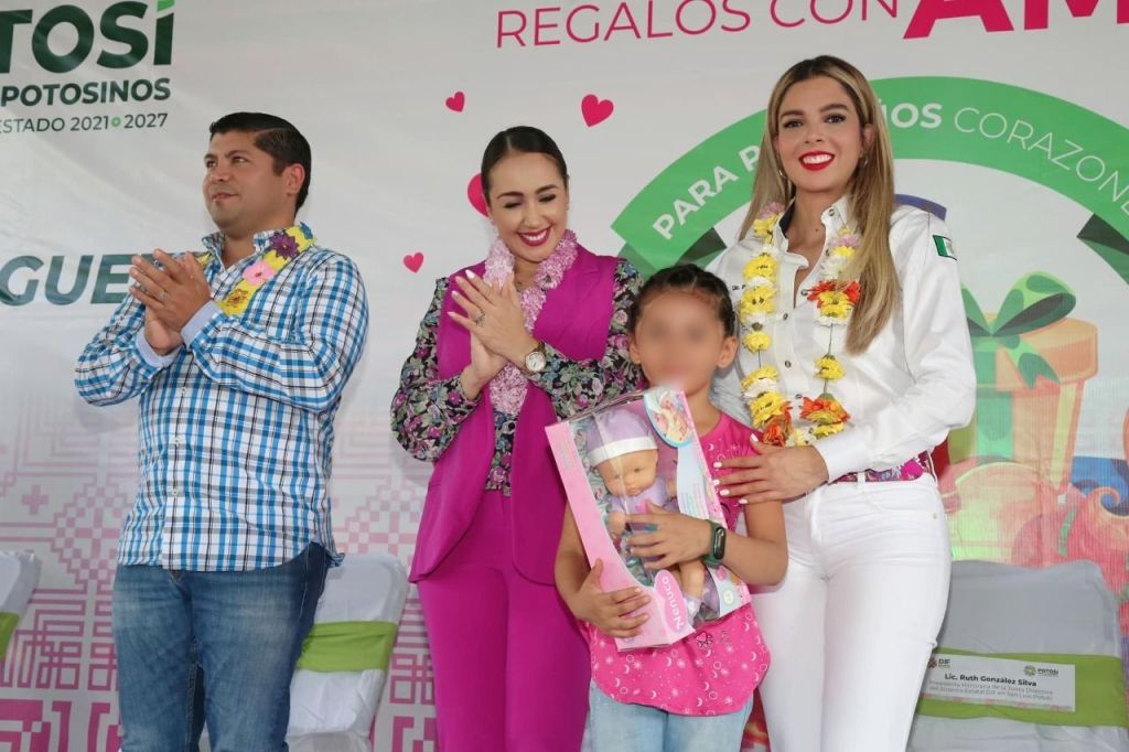 Con alegría, sonrisas y felicidad de las niñas, niños y jóvenes de la comunidad de La Soledad en el municipio de Tampacán, la presidenta de la junta directiva del Sistema Estatal para el Desarrollo Integral de la Familia (DIF), Ruth González Silva, encabezó la entrega de dos mil 500 juguetes de la campaña “Regalos con Amor para Pequeños Corazones”, siguiendo la estrategia del Gobernador de San Luis Potosí Ricardo Gallardo Cardona, para acercar la Navidad a las familias de las cuatro regiones del Estado.