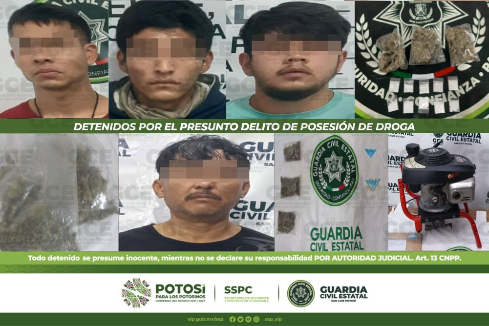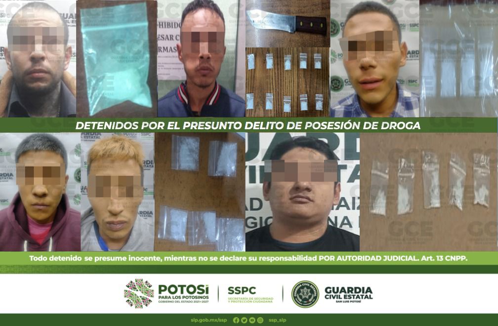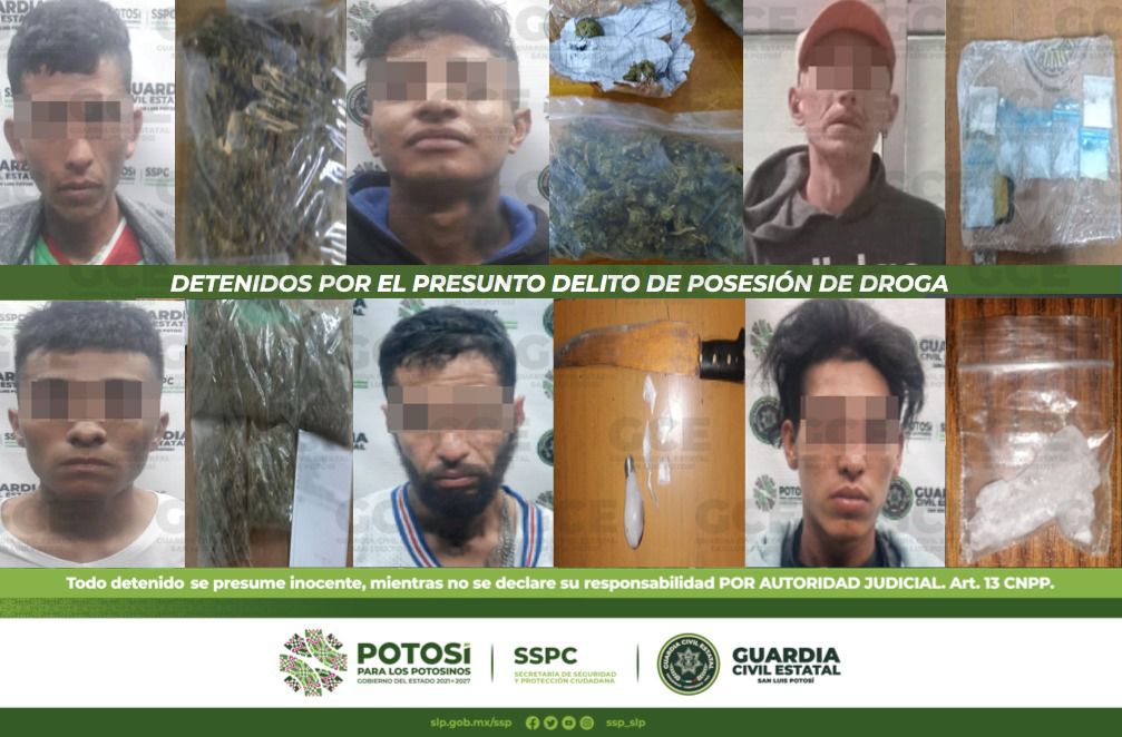 Como resultado de la reacción inmediata a situaciones que ponen en riesgo la seguridad pública de las y los potosinos, así como de las estrategias de vigilancia trazadas dentro del Plan Operativo “Otoño-Invierno 2022”, en distintas acciones, agentes de la Guardia Civil Estatal (GCE) detuvieron a 17 personas por el presunto delito de posesión de droga.