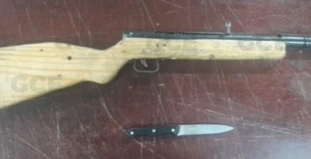 A su vez, en el municipio de Soledad de Graciano Sánchez, en las calles de Valentín Soto y Gama y Genovevo Rivas Guillén, fue detenido Carlos de 33 años de edad luego de que se le aseguró un cuchillo y un arma de confección artesanal conocida como cachimba.