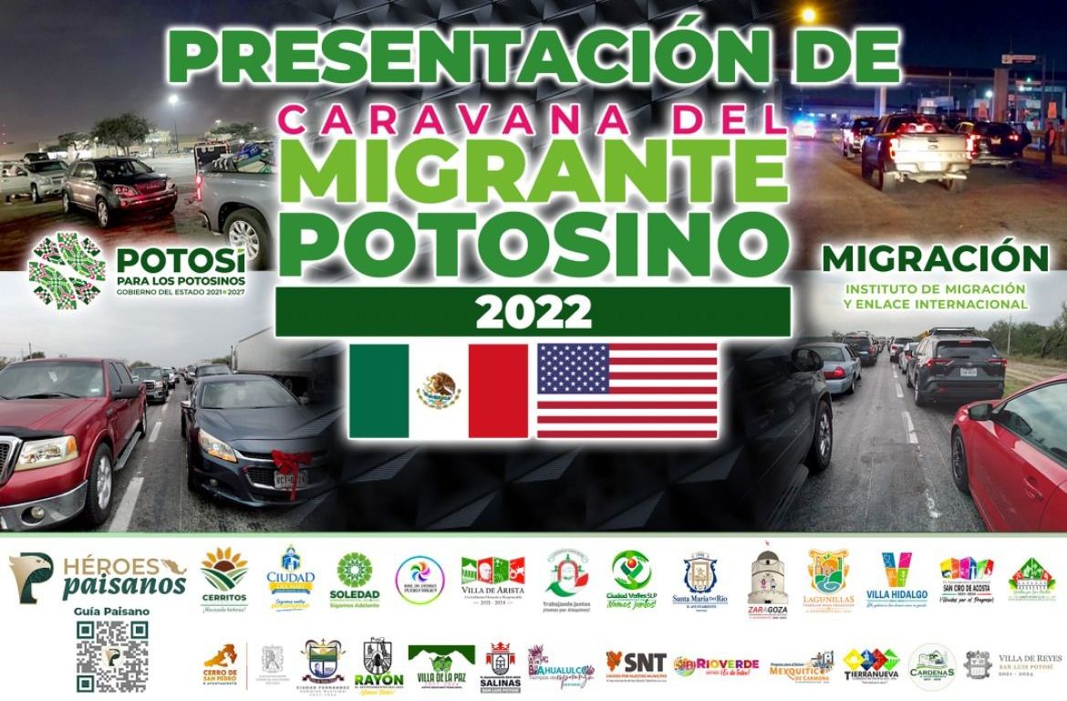 Cumpliendo con la política establecida por el Gobernador de San Luis Potosí Ricardo Gallardo Cardona, a favor de las paisanas y paisanos, fue presentada la Caravana del Migrante Potosino 2022, que está integrada por autoridades federales, estatales y 26 presidentes municipales y tiene el objetivo de brindar acompañamiento y protección a los connacionales que saldrán desde Brownsville y Laredo, Texas respectivamente los días 17 y 18 de diciembre del presente año.