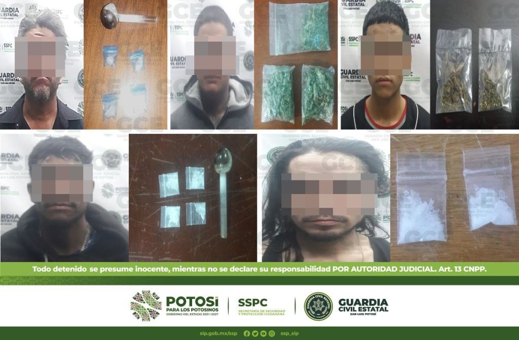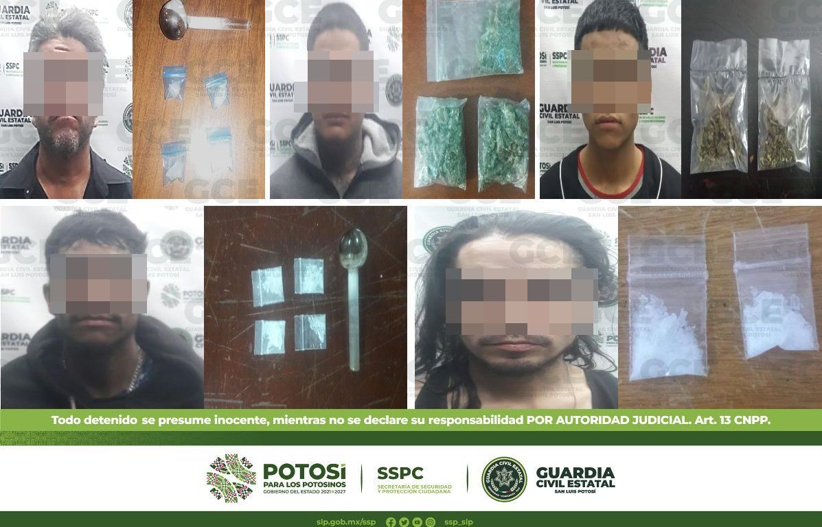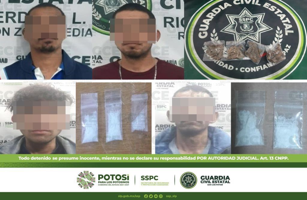 Por último, en el municipio de Rioverde, sobre las calles Delicias y Montevideo en la colonia Azahares, fue detenido José de 29 años de edad y Jonathan de 26, por la presunta posesión de cuatro bolsas con marihuana.