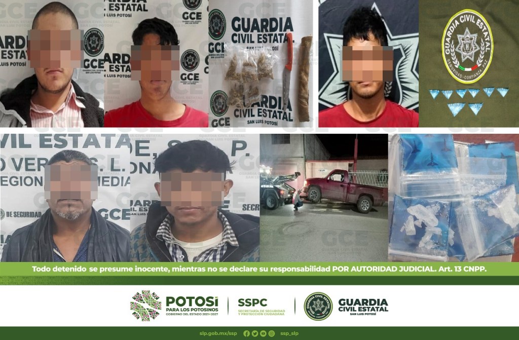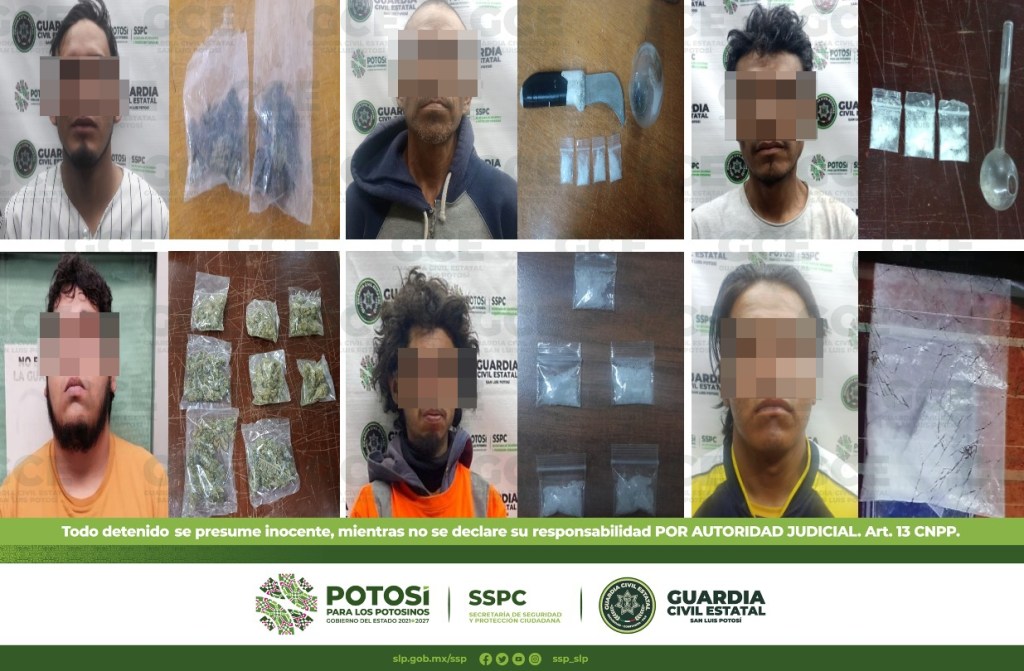 En el marco del despliegue operativo y de seguridad del Plan Operativo “Otoño-Invierno 2022”, con la finalidad de inhibir actos que atenten contra la integridad de las familias potosinas, en las últimas 24 horas, oficiales de la Guardia Civil Estatal (GCE) detuvieron a 16 personas por presuntos delitos contra la salud en su modalidad de posesión de droga.