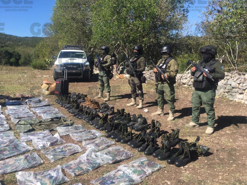 Un sorpresivo operativo a cargo de la Guardia Civil Estatal en el Municipio de Guadalcázar tuvo como resultado el aseguramiento de equipo táctico, chalecos anti balas y cobijas y que serían utilizado por un grupo delincuencial para incurrir en actividades ilícitas.