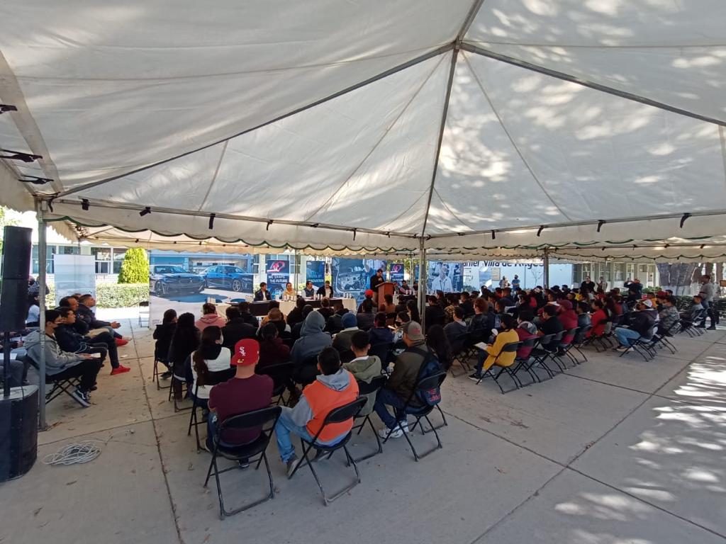 Por su parte, el gerente de Entrenamiento de BMW, Carlos García Siller destacó que Villa de Reyes es la casa de BMW y la confianza que habló el alcalde Daniel Lagunas es mutua, por eso la sinergia que se mantiene es porque la educación es clave de esta alianza entre empresa, sector educativo y gobierno, por lo que esta jornada de reclutamiento es parte de las estrategias que se tienen contempladas, ya que desde hace tres años que iniciaron operaciones se tiene la producción de tres modelos que son: Serie 3, Serie 2 y ahora el M2, e incluso de parte del plantel Conalep de Villa de Reyes se incorporaron las primeras 18 mujeres estudiantes al Modelo de Formación Dual, ya que durante cinco años que se implementa se han incorporado varios de los egresados a esta planta ubicada en el Parque Industrial Logistík segunda sección.