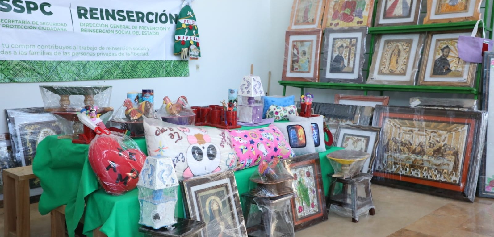 Buena respuesta y apoyo de la población ha recibido en el «Festival Navideño 2022» la exposición y venta de artículos, artesanías y creaciones de la población femenil y varonil del Centro Penitenciario Estatal de la Capital, en la Delegación de La Pila, como parte de fomentar y reconocer el talento, autoempleo y creatividad de quienes habitan el Penal, abriendo una posibilidad de beneficio económico para las Personas Privadas de la Libertad (PPL´s) y sus familias.