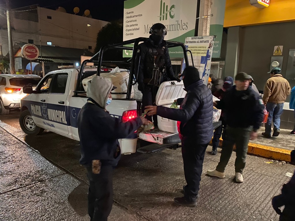 Por instrucciones del Presidente Municipal de Ciudad Valles, David Armando Medina Salazar, este 24 de diciembre personal del ayuntamiento encabezados por la Secretaria Claudia Isabel Huerta Robledo, realizaron un recorrido por zonas vulnerables para llevar apoyo para las bajas temperaturas que se registran a adultos mayores, así como para repartir dulces a los niños en esta fecha especial.