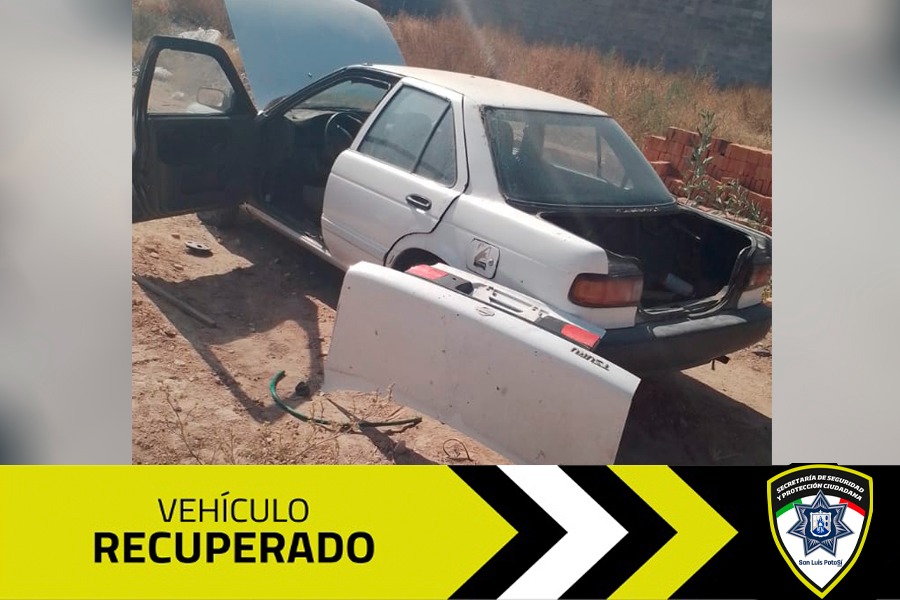 El segundo vehículo recuperado se localizó patrullando el cuadrante sur, cuando un ciudadano informó de la presencia de un vehículo marca Nissan Tsuru que al parecer se encontraba abandonado, los agentes acudieron a la avenida de Las Flores y Periférico Sur, donde visualizaron la unidad que se encontraba con huellas notables de desvalijamiento.