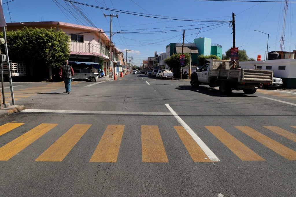 La rehabilitación integral de la avenida Tetela, que se realizó con el programa Vialidades PotoSÍnas, abarca desde la Avenida Muñoz a Camino Real a Pinos, para repavimentar más de 2 mil 400 metros cuadrados y con ello mejorar la movilidad en una zona de alto flujo vehicular.