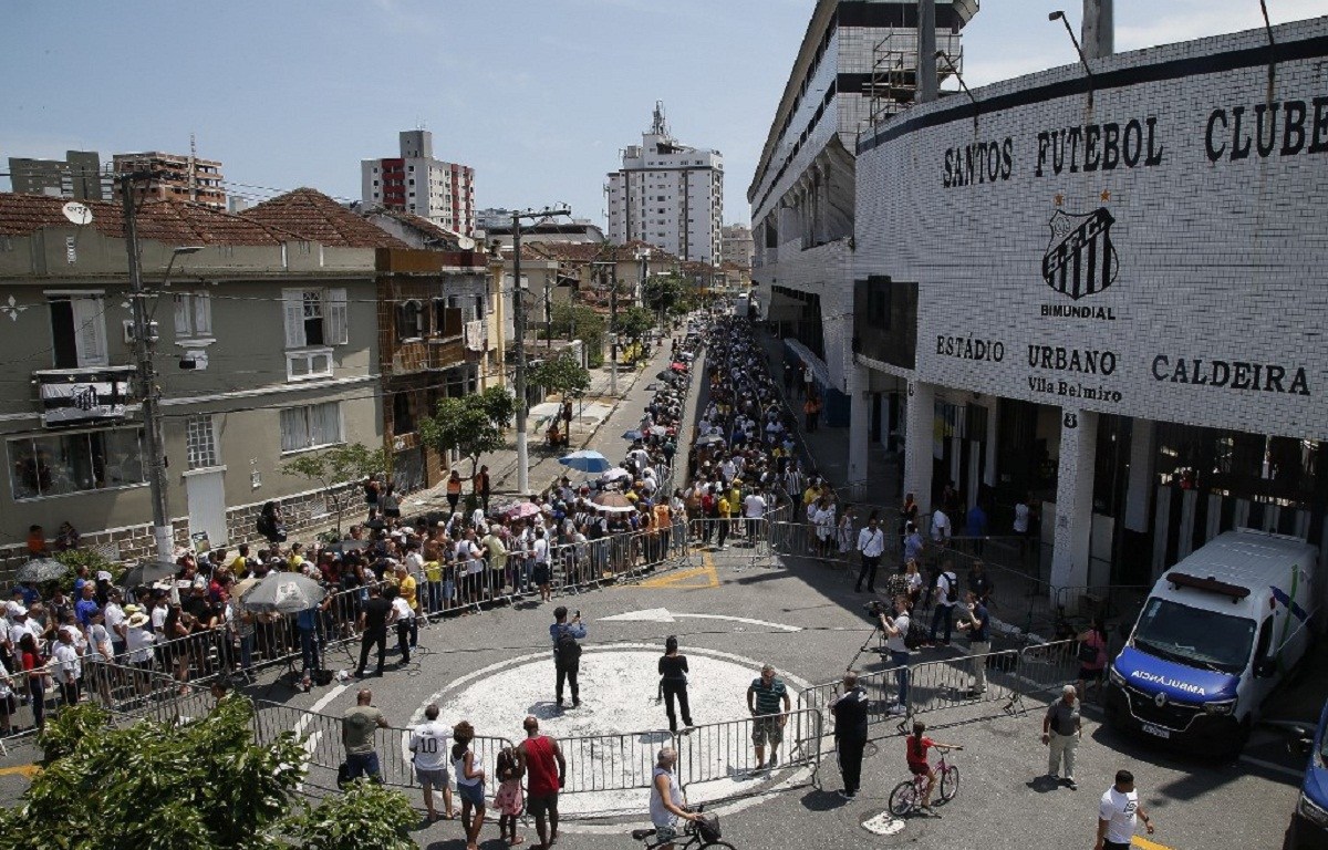 Los aficionados dan el último adiós a O Rei en el estadio del Santos, el club de su vida. Después, el astro será sepultado en un cementerio de Récord Guinness.