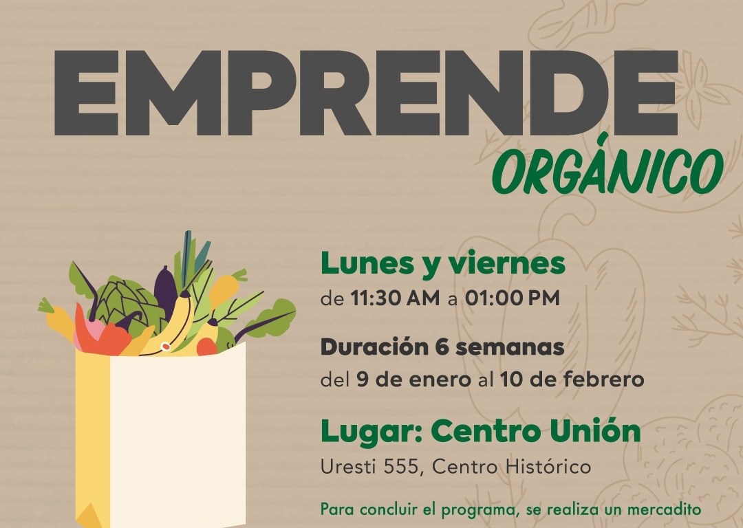 En el caso del programa “Emprende Orgánico”, dirigido a quienes vendan productos de origen orgánico, las actividades se desarrollarán de lunes a viernes, de las 11:30 a las 13:00 horas en el Centro Unión, ubicado en la Calle Uresti 555 del Centro Histórico.