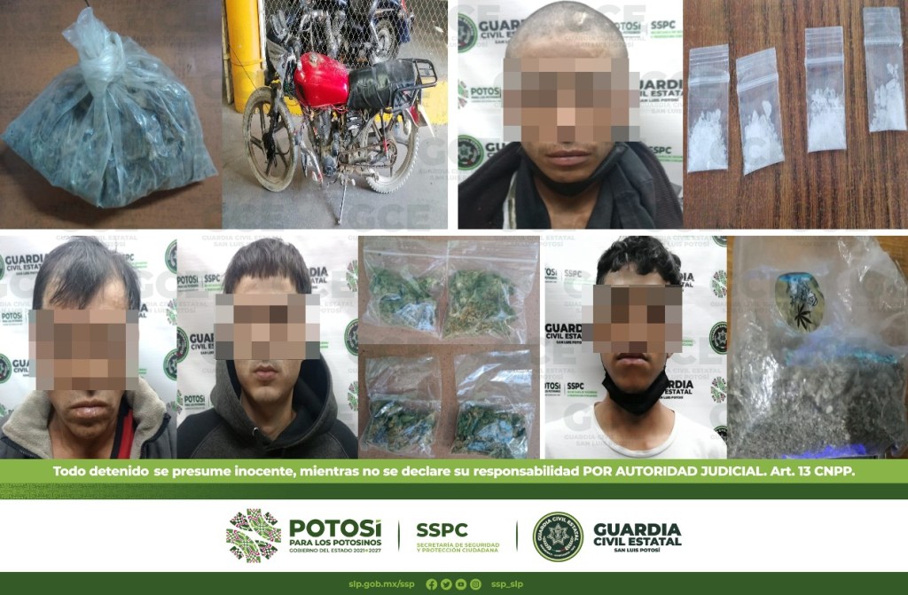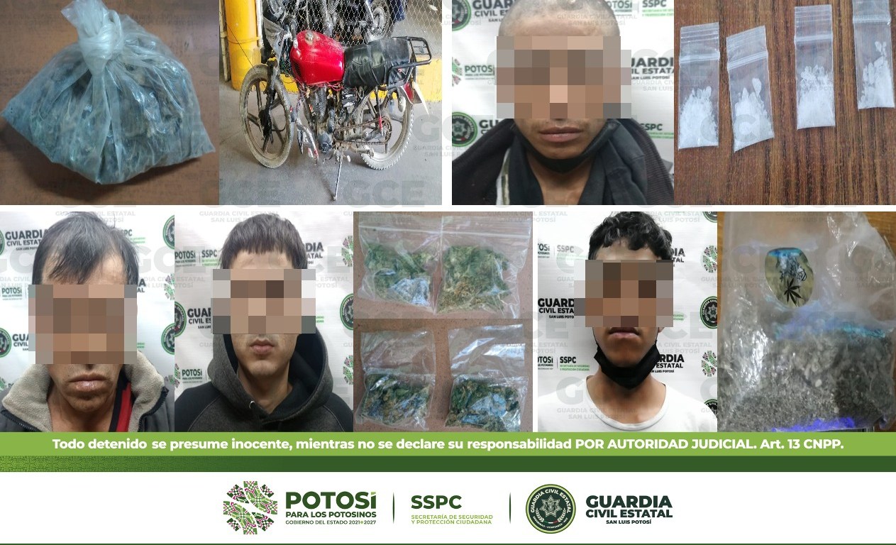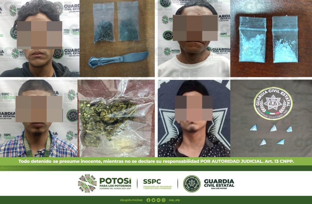 Como resultado de los operativos de seguridad y vigilancia desplegados dentro el Plan Integral de Seguridad en las cuatro regiones de San Luis Potosí, cuyo objetivo es evitar la comisión de hechos delictivos, agentes de la Guardia Civil Estatal (GCE) detuvieron a 9 personas por la presunta posesión de droga.