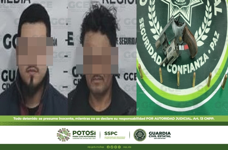 Al llevar a cabo una inspección preventiva, los uniformados se percataron de que los presuntos se encontraban armados con un revólver calibre 38 especial, con cinco cartuchos útiles; por ello procedieron a la detención inmediata de Alexis de 22 años de edad y de José de 49 años, quienes fueron puestos a disposición de la Fiscalía General de la República junto con lo asegurado.