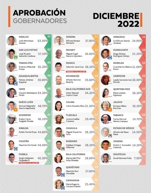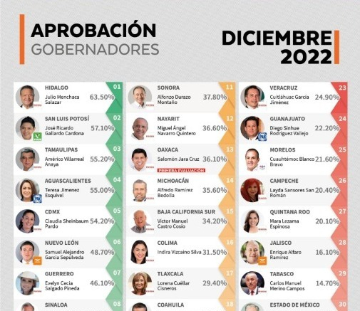 Con 57.1 por ciento, supera por mucho el promedio nacional de las y los Gobernadores que se ubicó en 33.5 por ciento, de acuerdo con Arias Consultores