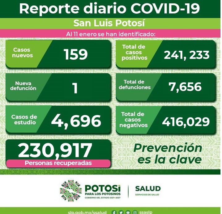 Se dan a conocer 159 nuevos contagios de Covid-19 en el Estado, confirmando el Comité Estatal para la Seguridad en Salud y los Servicios de Salud 241 mil 233 casos totales de esta enfermedad.