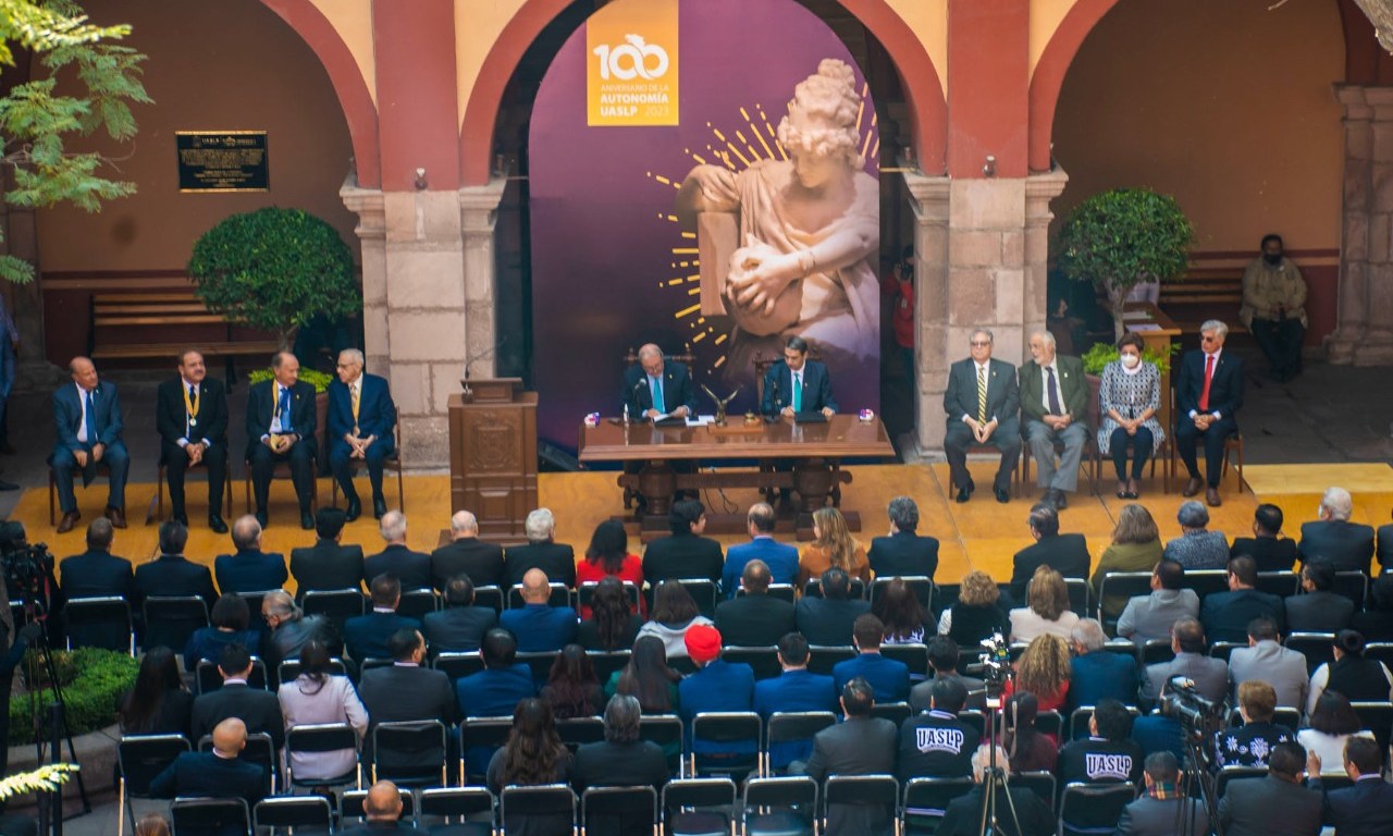 Más adelante, el rector destacó que la autonomía debe seguir siendo el pilar fundamental en que se apoya el crecimiento de la UASLP y de todas las universidades públicas del país. “La unidad y el cuidado de la comunidad así como el respeto por la diversidad y la capacidad para llegar a acuerdos se han tejido gracias al trabajo de los cuerpos colegiados y a la cultura de inclusión y colaboración que le han dado soporte al funcionamiento y operación de la institución, así se ha generado ese sentido de pertenencia que tienen nuestros egresados, el profesorado, personal administrativo y estudiantes”, puntualizó tras reconocer que muchísimas personas han formado parte de la historia de la construcción de la UASLP que es patrimonio y orgullo del estado.