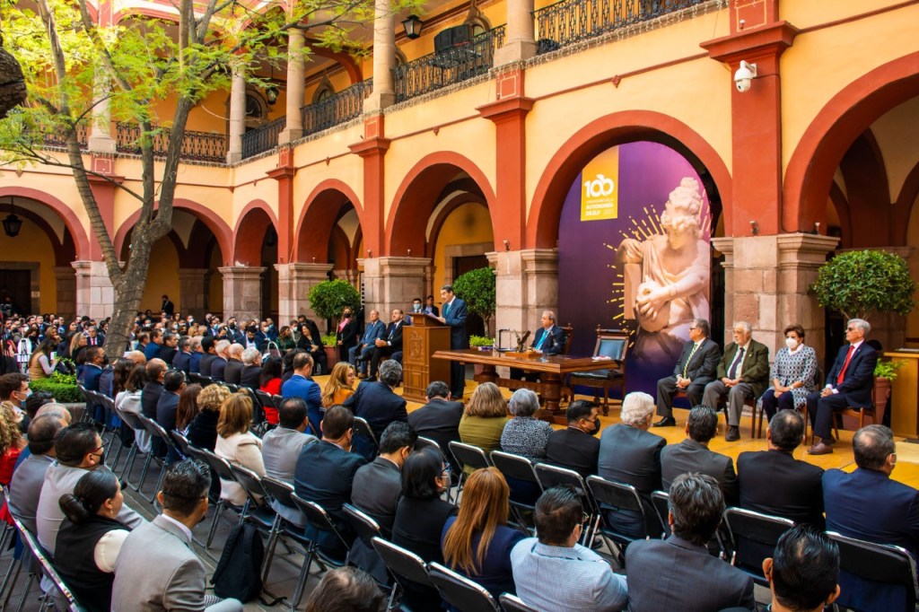“En el umbral del nuevo centenario debemos fortalecer los rasgos de identidad y comprometernos con los cambios que el futuro requiere. Nuestra unidad es y será nuestra mayor fortaleza, pues los tiempos son complejos y las condiciones no siempre son las deseables, pero la historia nos demuestra que nada ha sido un obstáculo para que la universidad avance, gracias a esa comunidad que reunida aquí hoy renueva la responsabilidad social que exige su autonomía”, así lo destacó el rector de la Universidad Autónoma de San Luis Potosí (UASLP), Dr. Alejandro Javier Zermeño Guerra, durante la sesión solemne del honorable Consejo Directivo Universitario (CDU) efectuada para conmemorar el Centenario de la Autonomía.