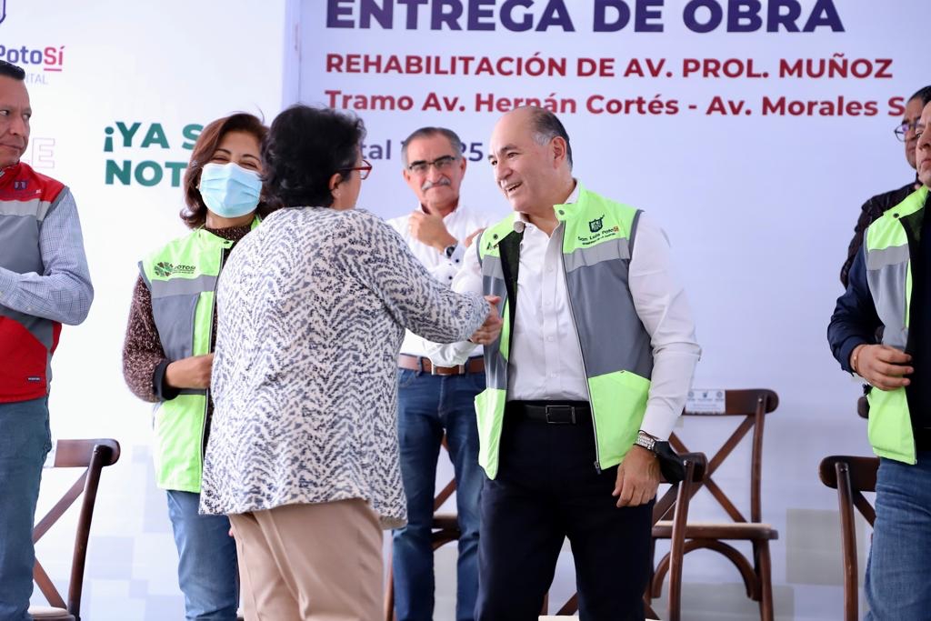 El Presidente Municipal de San Luis Potosí, Enrique Galindo Ceballos, acompañado por el Gobernador del Estado, Ricardo Gallardo Cardona, inauguró la rehabilitación integral de la avenida Prolongación Muñoz, en el tramo de Hernán Cortés a Morales-Saucito, con el programa Vialidades PotoSÍnas.