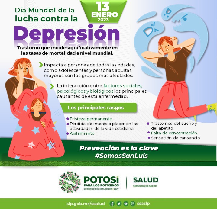 Con la finalidad de sensibilizar, orientar y prevenir a la población sobre esta enfermedad, cada 13 de enero, se celebra el Día Mundial de la Lucha contra la Depresión, señaló la Mtra. Lucero Torres Moreno, Responsable del Programa de Salud Mental de los Servicios de Salud del Gobierno del Estado. Agregó que la depresión representa un grave problema de Salud Pública, está asociado a una reducción en el funcionamiento de las personas, una mayor mortalidad y un importante impacto en costos económicos y sociales.