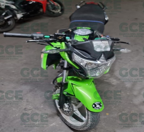 Los oficiales de la GCE patrullaban sobre avenida Salk y calle Nobel; ahí, detuvieron a Carlos de 18 años de edad luego de asegurarle una motocicleta Italika, color verde con negro, modelo 2021, sin placa, la cual contaba con reporte de robo en el año 2021, en la avenida de Damián Carmona.