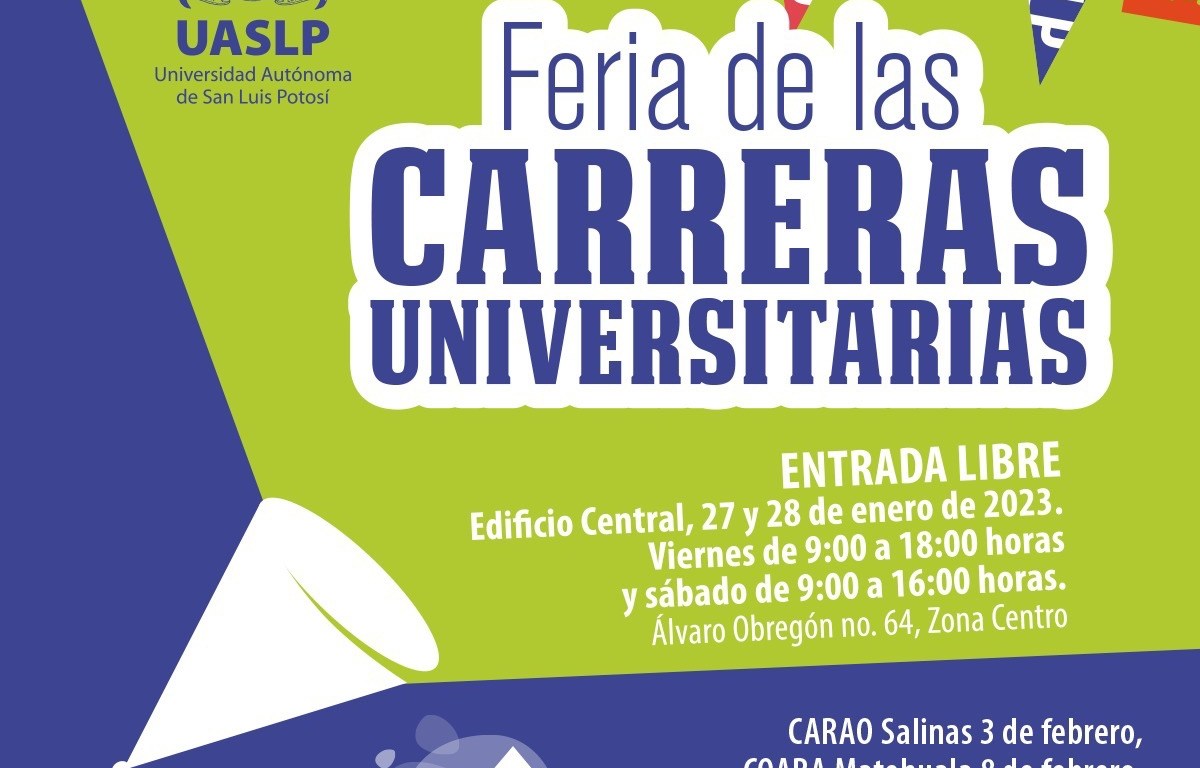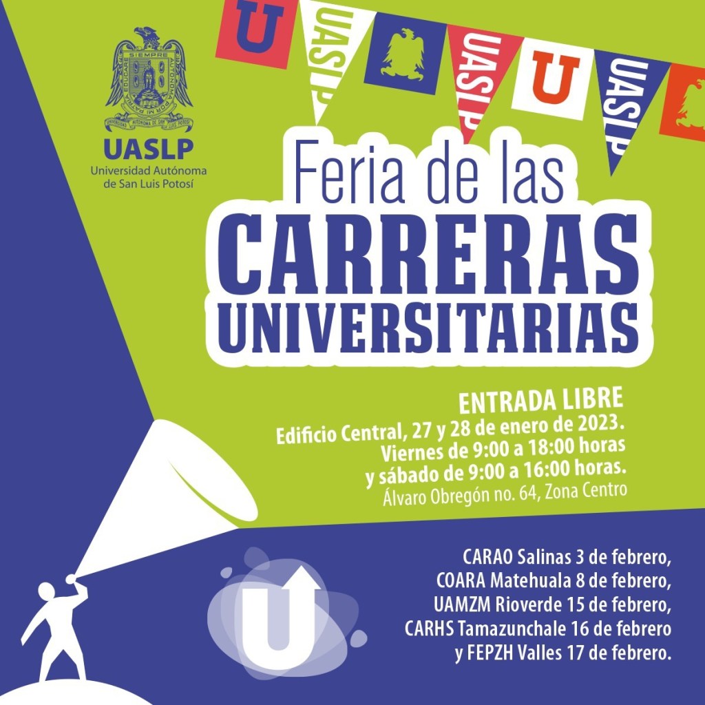 Con la premisa de que las y los aspirantes a ingresar a la Universidad Autónoma de San Luis Potosí (UASLP) tengan más tiempo para aclarar sus dudas, la Secretaría de Servicios Escolares anuncia la Feria de las Carreras Universitarias, donde se presenta toda la oferta académica que ofrece la Casa de Estudios Potosina.