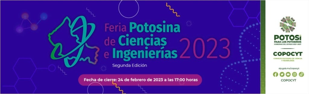 En el trabajo conjunto de fomentar las vocaciones científicas en jóvenes de educación media superior y superior, a través de su participación en proyectos científicos y tecnológicos, como lo definió el Gobernador de San Luis Potosí, Ricardo Gallardo Cardona, el Consejo Potosino de Ciencia y Tecnología (Copocyt), invita a participar en la segunda edición de la Feria Potosina de Ciencias e Ingenierías 2023.