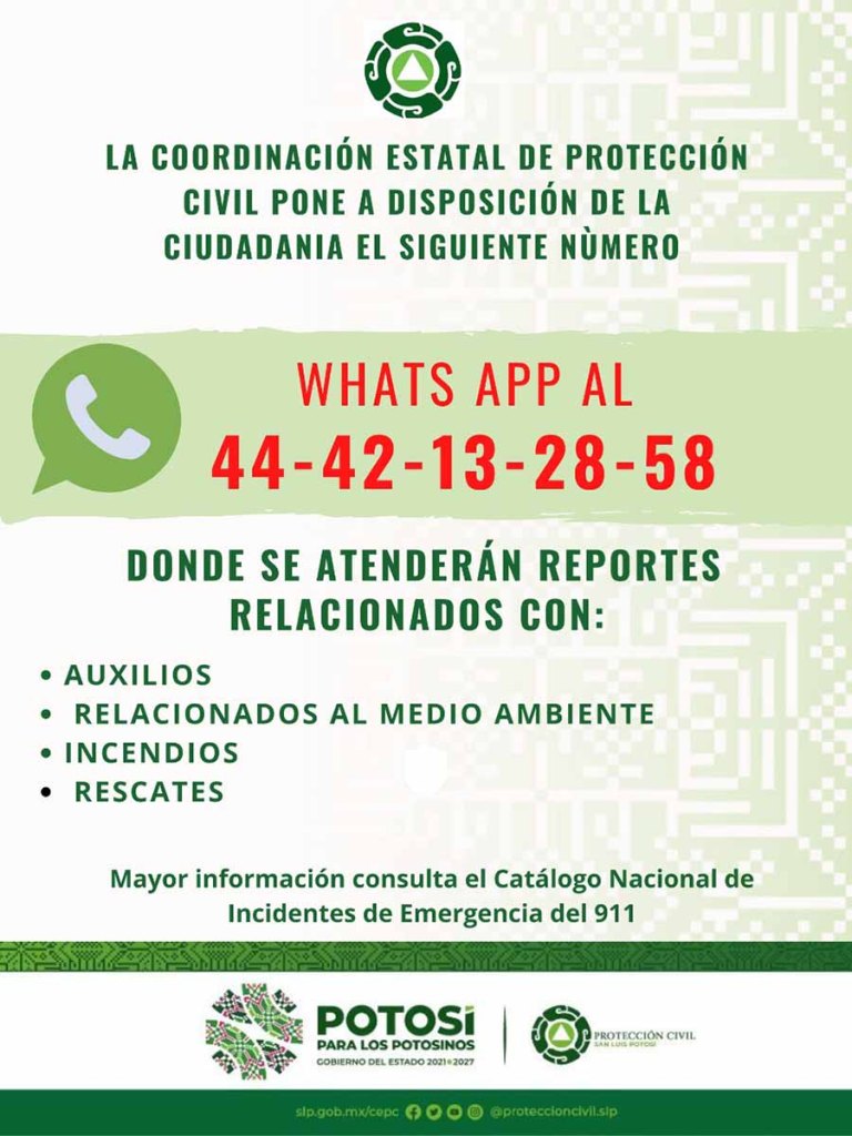 El número de WhatsApp 444 213 2858 estará activo los 365 días del año, las 24 horas del día; se hace un llamado a la población a hacer un uso responsable del servicio