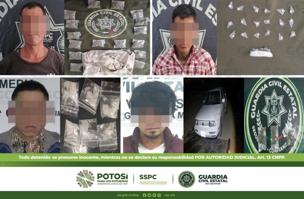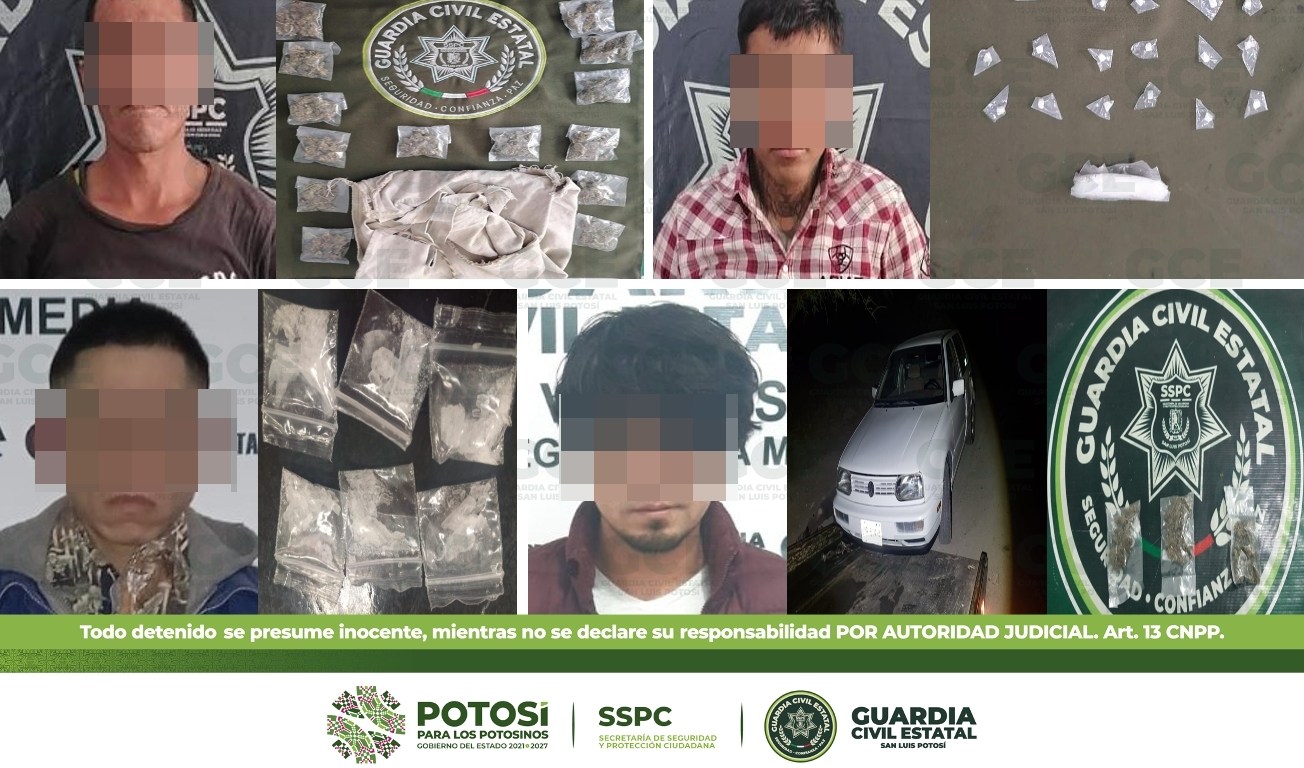 Dentro de las acciones preventivas desarrolladas en el Plan Integral de Seguridad que tiene como objetivo inhibir la comisión de hechos que vulneren la integridad de las familias potosinas, 10 personas resultaron detenidas por la Guardia Civil Estatal (GCE) por el probable delito de posesión de estupefacientes; dos de ellos son considerados objetivos criminales en la zona Huasteca.