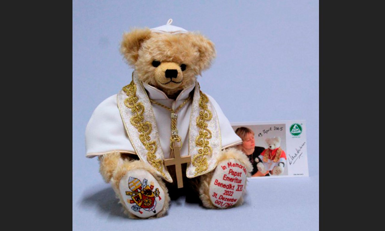 La empresa alemana Hermann-Spielwaren, uno de los fabricantes de osos de peluche más antiguos del mundo, lanzó dos modelos de edición limitada en memoria del Papa Benedicto XVI, que murió el 31 de diciembre de 2022.