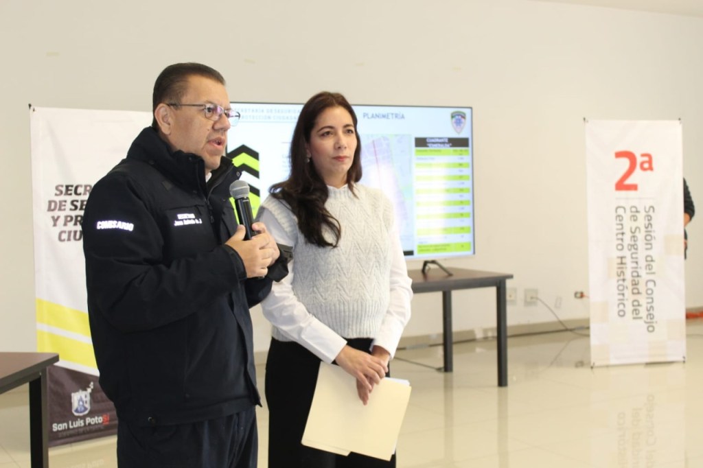 El titular de la Secretaría de Seguridad y Protección Ciudadana (SSPC) del Ayuntamiento de San Luis Potosí, Comisario Juan Antonio Villa Gutiérrez, presentó ante el Consejo de Seguridad del Centro Histórico el informe de resultados operativos correspondiente al periodo de diciembre 2022 y los primeros días de este año, en la segunda sesión del Consejo efectuada la mañana de este sábado en Centro Unión.