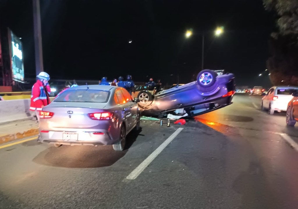Policía Vial abandera volcadura de vehículo en av.Salvador Nava y pendiente descendiente a calle Independencia en dirección al poniente.