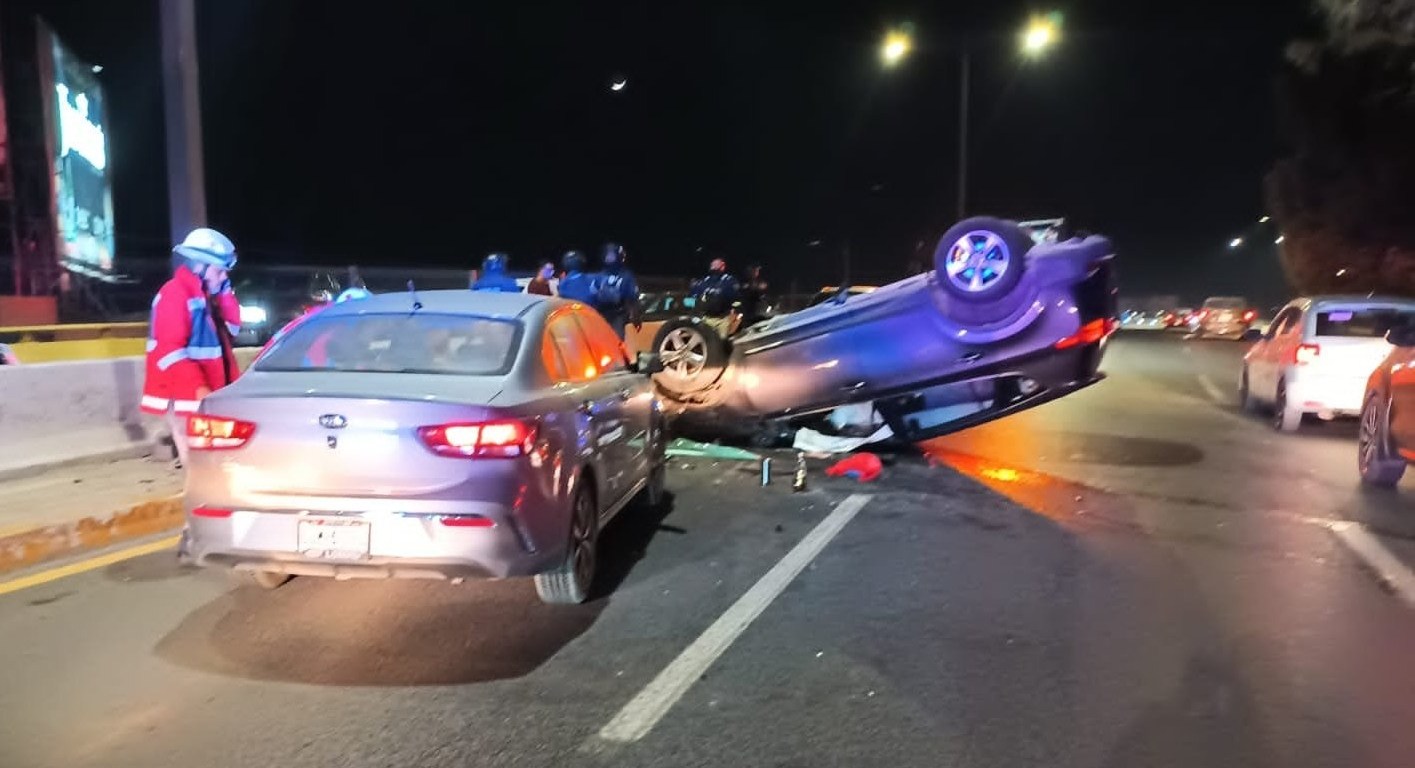Policía Vial abandera volcadura de vehículo en av.Salvador Nava y pendiente descendiente a calle Independencia en dirección al poniente.